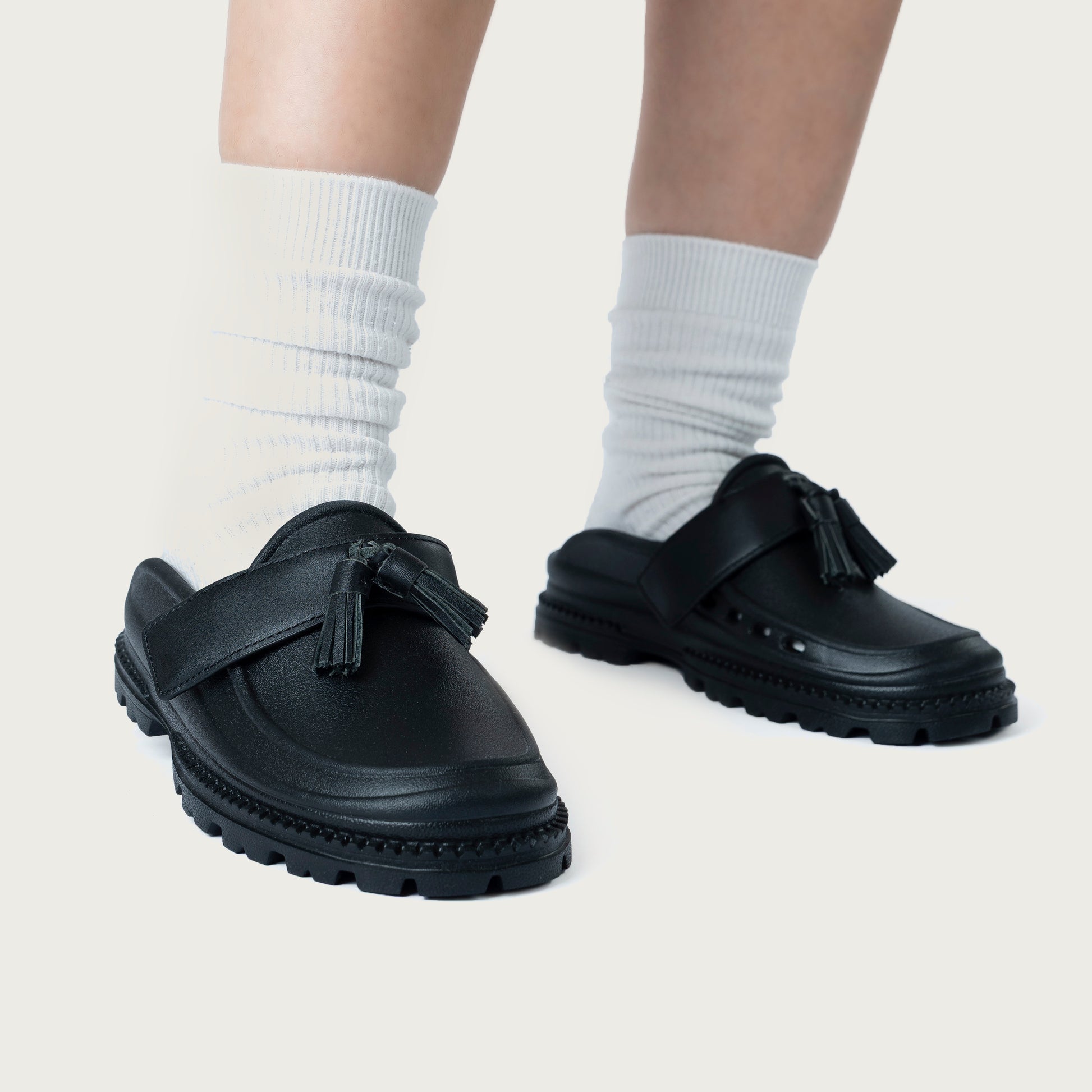 A modern take on a classic silhouette. The Cast Tassel pairs molded IPEVA with leather tassel loafer straps and hand-painted edges for all-day comfort and understated luxury.