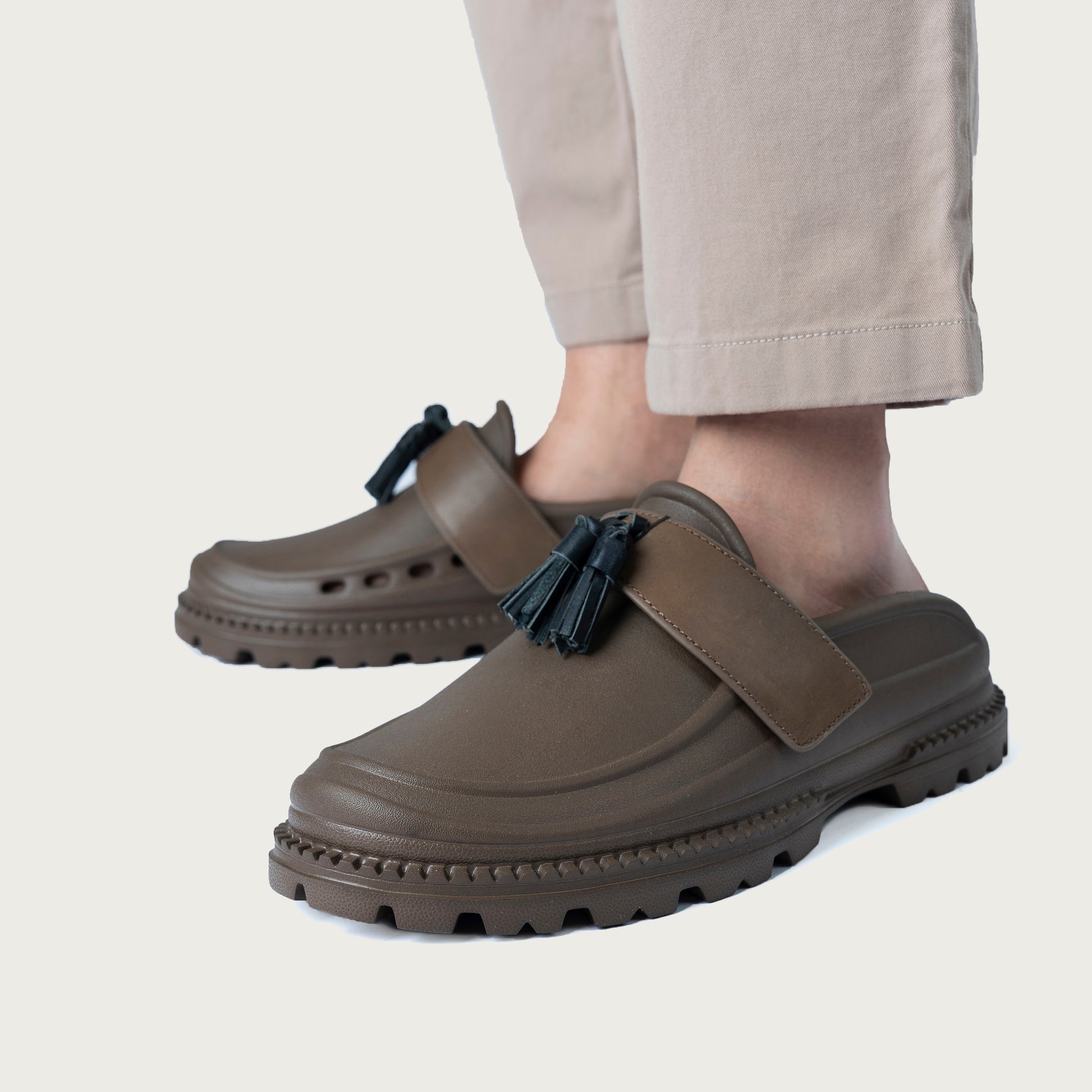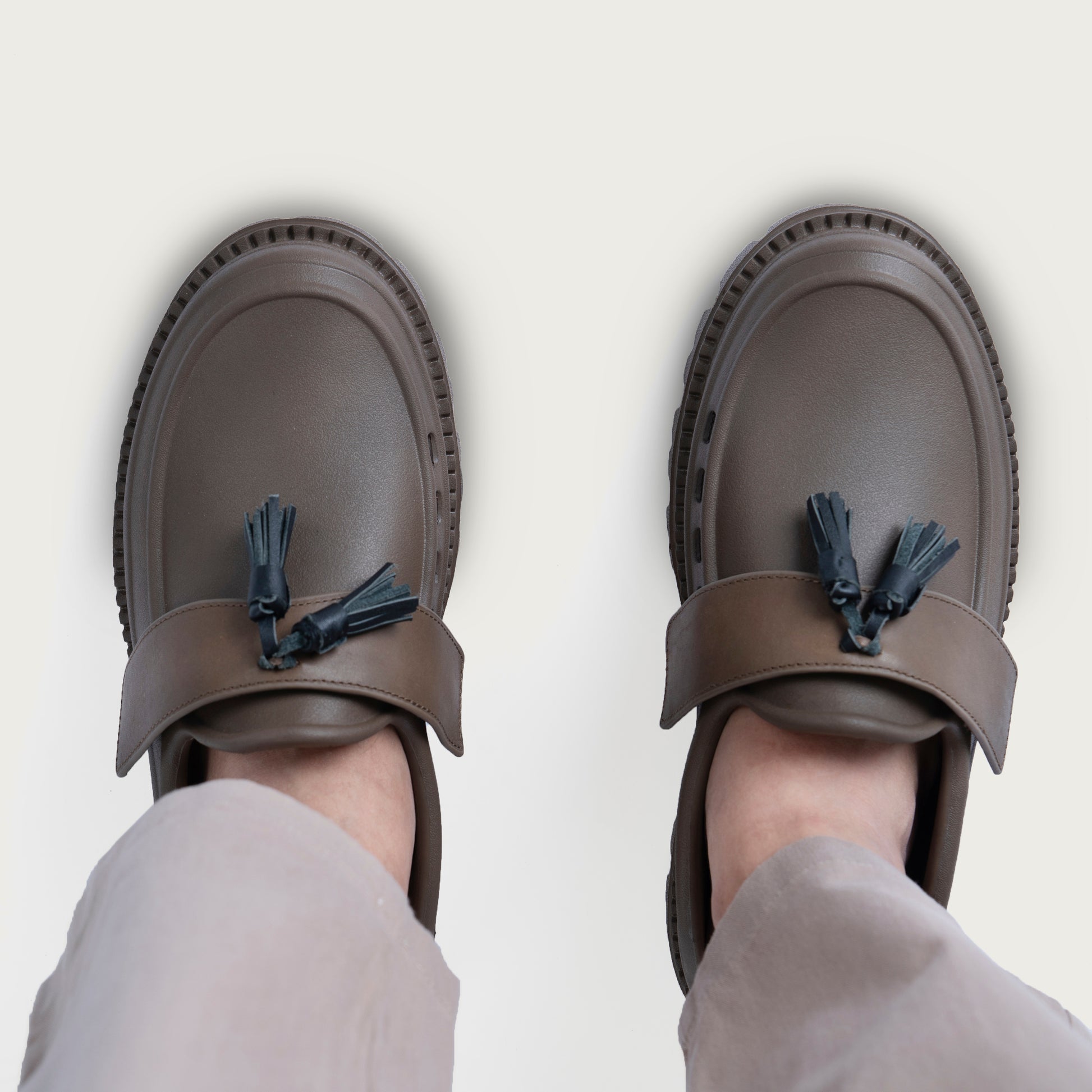 A modern take on a classic silhouette. The Cast Tassel pairs molded IPEVA with leather tassel loafer straps and hand-painted edges for all-day comfort and understated luxury.
