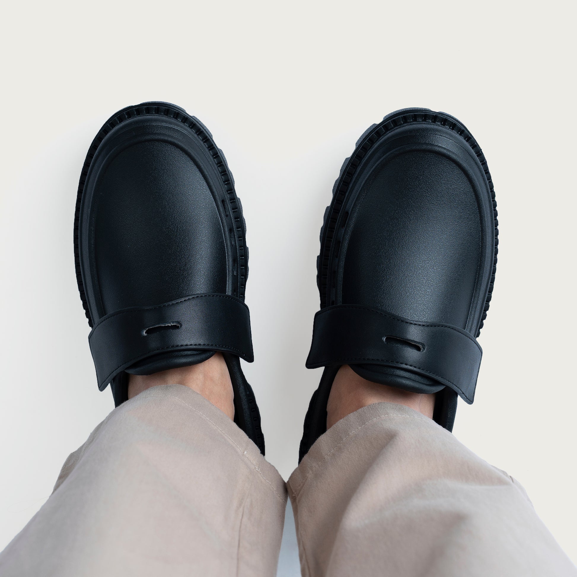 A modern take on a classic silhouette. The Cast Slide pairs molded IPEVA with leather penny loafer straps and hand-painted edges for all-day comfort and understated luxury.