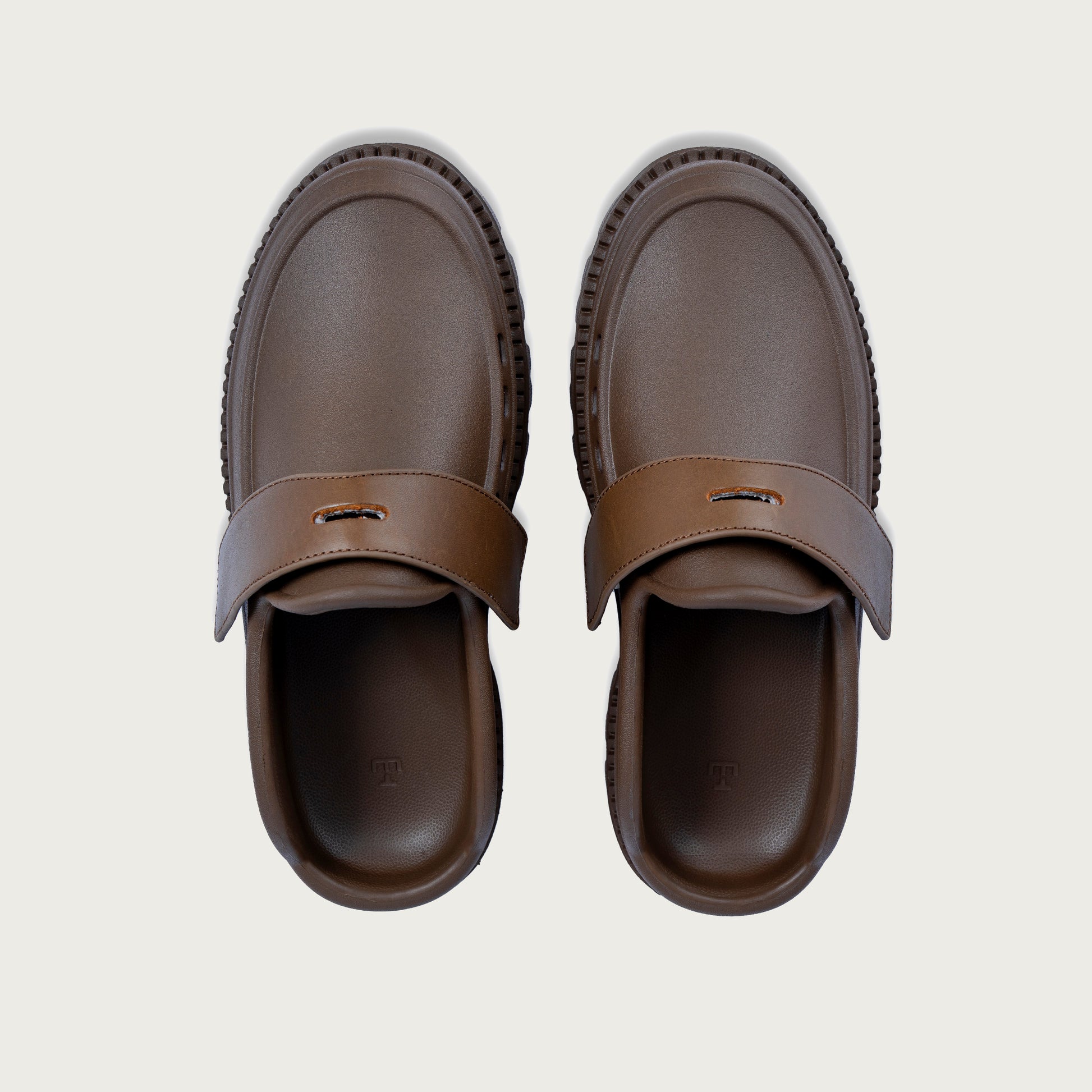 A modern take on a classic silhouette. The Cast Slide pairs molded IPEVA with leather penny loafer straps and hand-painted edges for all-day comfort and understated luxury.
