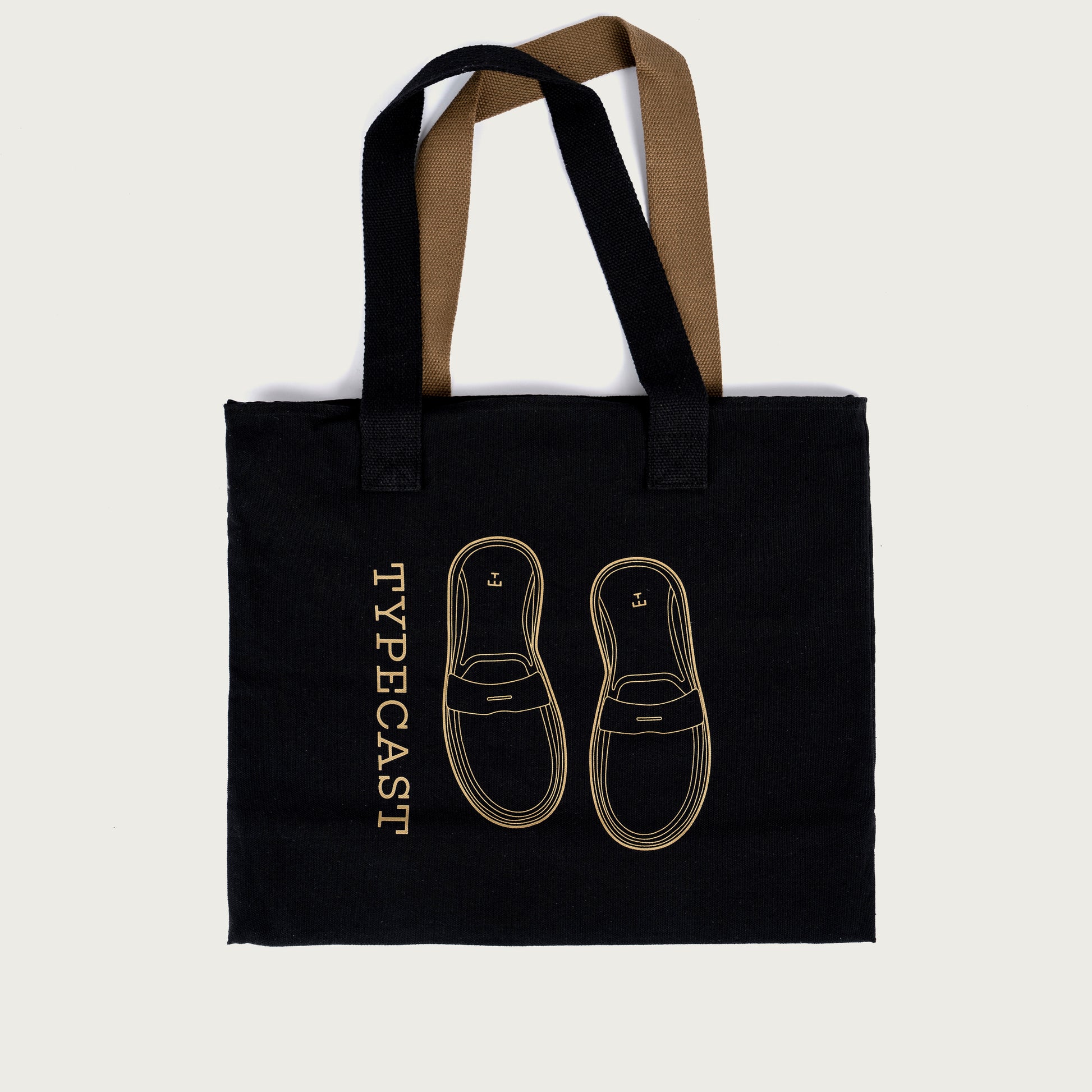 - Reusable canvas cotton tote with nylon drawstring closure included in shoe box